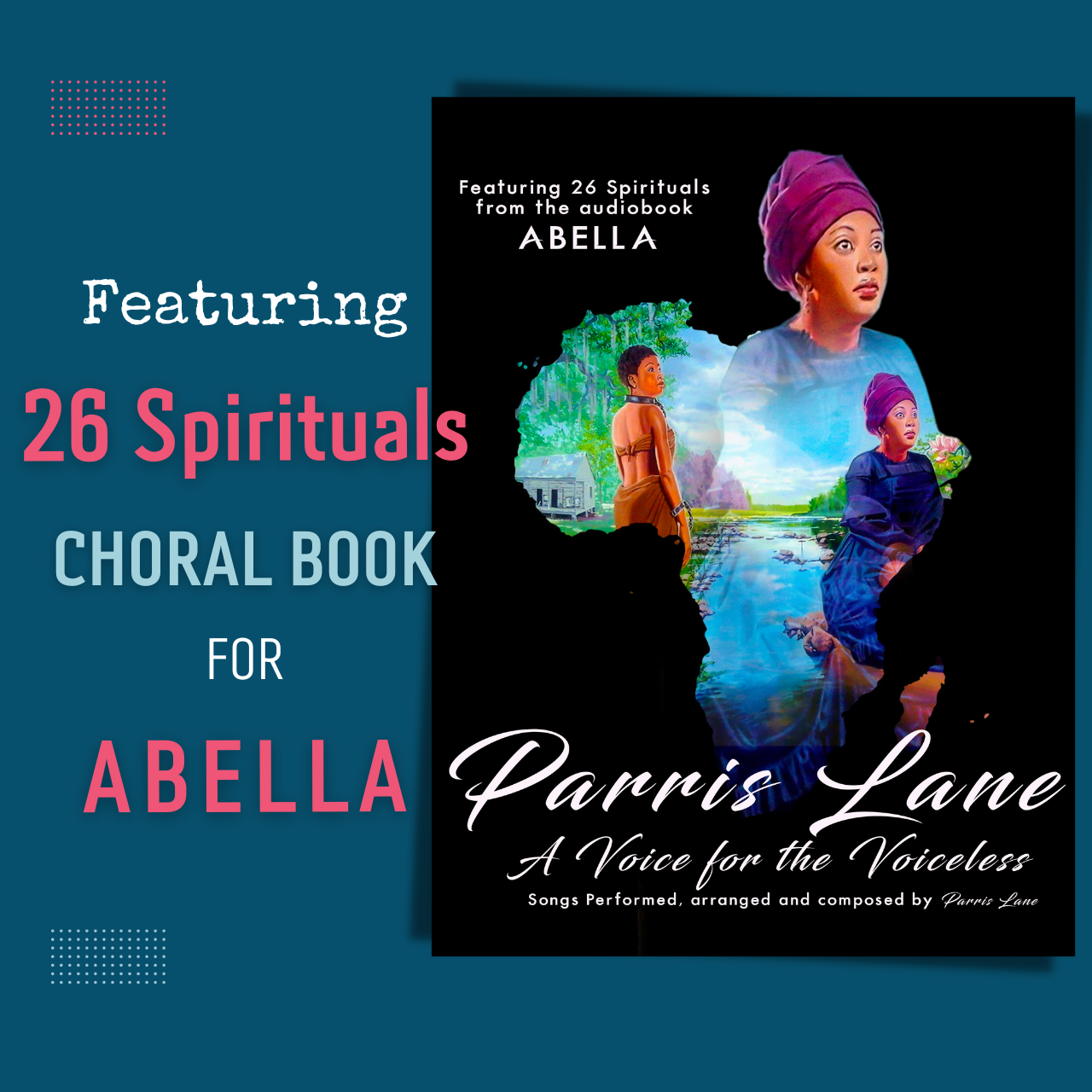 Twenty-six transcribed choral arrangements (sheet music) of Spirituals from the historical fiction music audiobook Abella as arranged, performed, and produced by Parris Lane. Transcribed by the late John Starr.